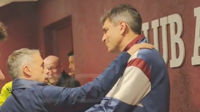 Pellegrino, también exDT azul, esperó a Gustavo Alvarez en los pasillos del estadio tras el partido para darle un amistoso saludo.