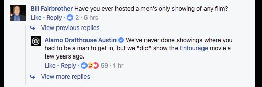 Drafthouse announces ladies-only Wonder Woman screening. Dudes get pissy. Drafthouse responds hilariously. I love working for these folks. pic.twitter.com/aBToCZLY5j