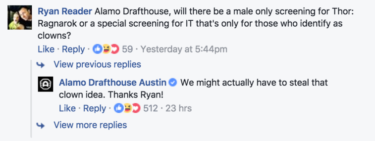 En respuesta a los alegatos masculinos, Alamo Drafthouse comenzó a ironizar con los comentarios. Incluso, anunciaron que agregarían una nueva función solo para mujeres de "Wonder Woman".