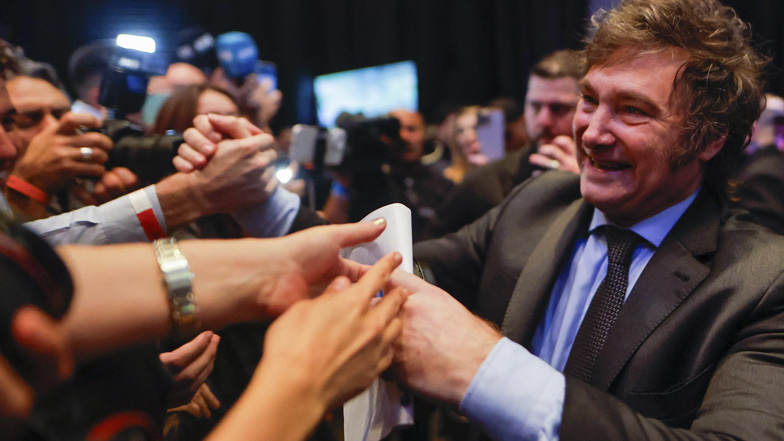 "Basta del modelo empobrecedor de la casta, hoy volvemos a abrazar las ideas de la libertad para ser una potencia mundial", prometió el líder de La Libertad Avanza (ultraderecha), quien derrotó en la segunda vuelta presidencial al oficialista Sergio Massa (44,30 %).