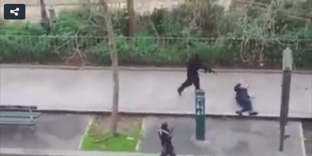Una imagen del brutal ataque terrorista en Francia: Con extrema sangre fría, los hombres armados con fusiles remataron en el suelo a una de sus víctimas. Cooperativa originalmente publicó la secuencia, pero luego consideramos que el relato de los hechos hacía innecesario exponer más una trágica e inentendible situación.