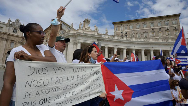 "Estoy cerca del querido pueblo cubano en estos momentos difíciles, en particular a las familias, que mayormente sufren. Rezo al Señor para que ayude a construir en paz diálogo y solidaridad una sociedad cada vez más justa y fraterna", dijo el pontífice.