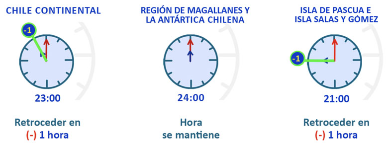 A la medianoche, los relojes se retrasaron una hora en territorio continental, salvo en la Región de Magallanes y de la Antártica Chilena.