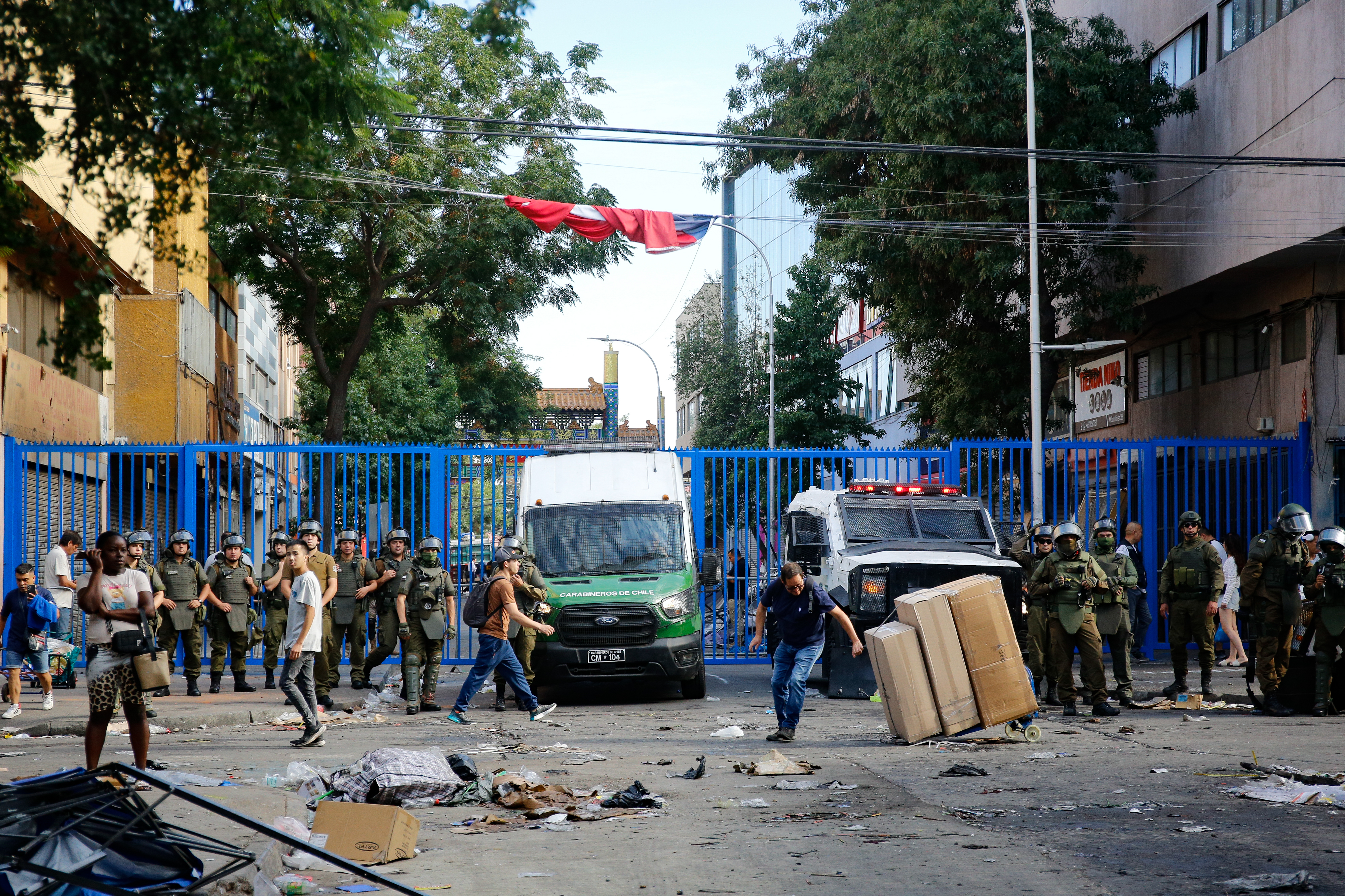 Tras los desmanes, el municipio decidió extender una cuadra más hacia el sur el anillo de seguridad, ampliando la etapa tres de la intervención de Meiggs hasta la calle Gorbea, y sus funcionarios ya instalaron portones de fierro para evitar la entrada del comercio ambulante.