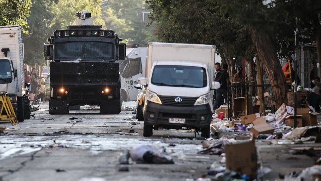 Los hechos más violentos ocurrieron en las esquinas de San Alfonso con Toesca, y Conferencia con Toesca, donde los ambulantes se enfrentaron con Carabineros, pero también pelearon entre ellos para tomarse el espacio público.