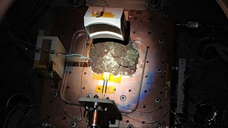 Las muestras dentro de la cámara MARTE, bajo el ciclo de simulación diurno marciano. (Foto: Centro de Astrobiología).